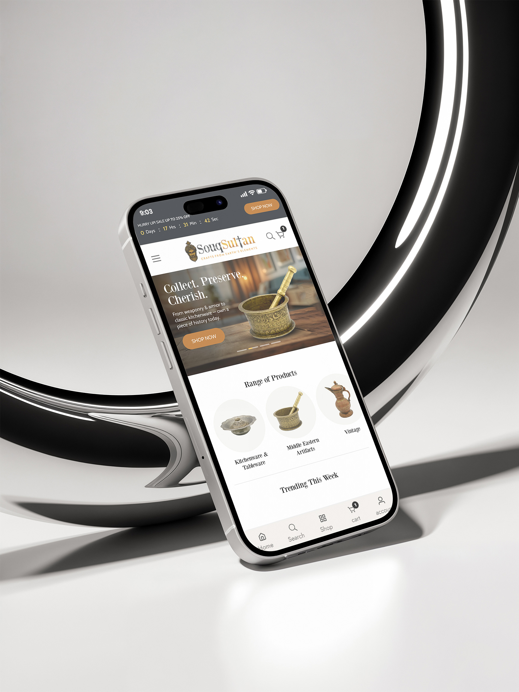 The revamp gave Souq Sultan a refined, modern identity while preserving its Middle Eastern essence. With a sophisticated color palette, elegant typography, and curated imagery, the design delivers a seamless and visually rich shopping experience.
